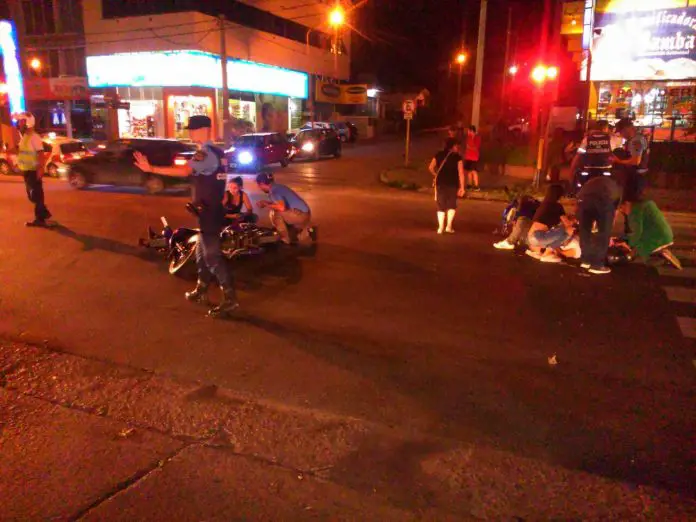 Ambos conductores quedaron tendidos en la carpeta asfáltica y fueron atendidos por servicios de emergencia y trasladados al Hospital Municipal con politraumatismos varios.