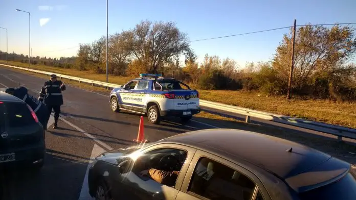 La policía de Córdoba, realiza cortes en el ingreso a la ciudad de Córdoba por Av. Fuerza Aérea, para permitir la salida de las unidades de colectivos que realizan el recorrido gratuito de emergencia que dispuso el municipio de la ciudad de Córdoba ante el paro de transporte generado paro UTA Córdoba.