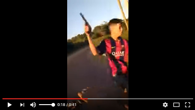 En la secuencia, grabada desde un casco, se ve dos motos circulando por un camino semi rural del conurbano bonaerense. En un momento ambas son cruzadas por un tercer rodado, en el que se ve a dos personas, una de ellas armada con una pistola 9mm.