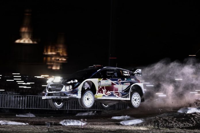 El cuatro veces campeón Sebastian Ogier arriba de su Ford Fiesta hizo el mejor tiempo en el primer tramo oficial del Word Rally Car Argentina 2017.