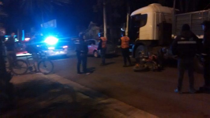 “Por razones que se desconocen, el conductor de la moto perdió el control y colisionó con la parte del camión en la que está el tanque de combustible, detrás de la cabina”, señalaron desde Bomberos. “Ambas personas venían con caso pero asimismo la acompañante sufrió heridas en la cabeza”.
