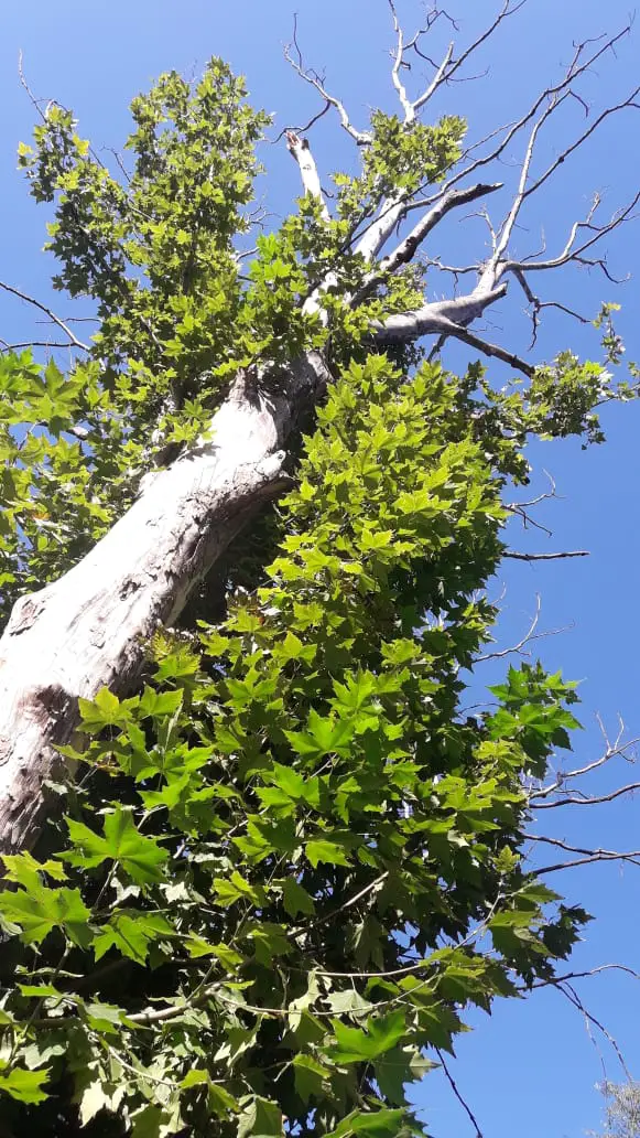 Este plátano, o álamo Carolino… o lo que fuere, fue testigo, a la derecha de la foto, de millones de litros de agua cristalina cruzar por el puente acanalado o ducto que aún está en pie, en una residencia de una nieta de Don Carlos Nicandro, creador de dicha obra hidráulica.