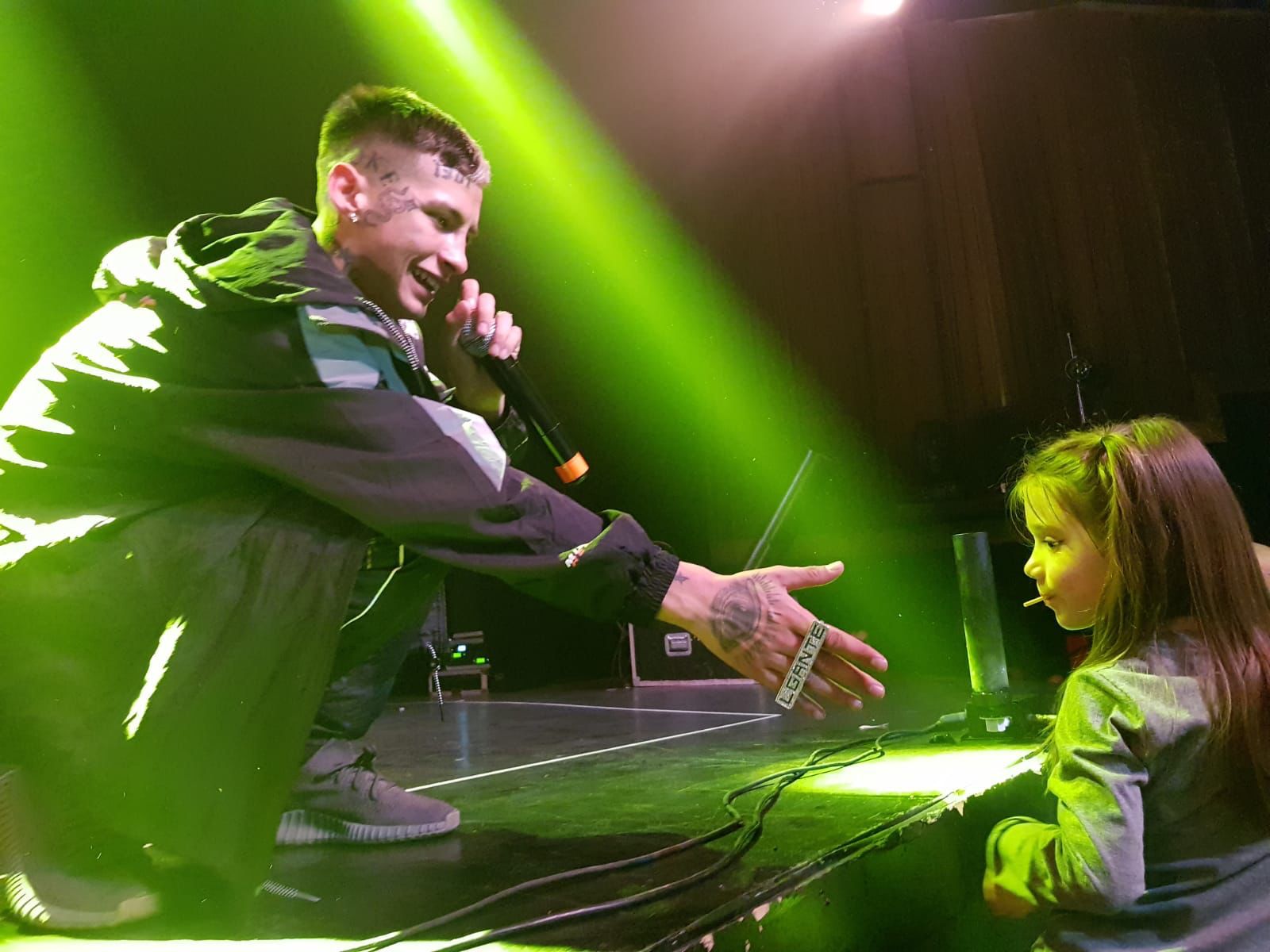 Luego dio inicio al espectáculo con una seguidilla de éxitos: Titubeo, L- Gante RKT, Tinti Nasty, Alta Data. Cuando llegó el momento del famoso “Abecedario”, invitó a varios niños y niñas a compartir la canción arriba del escenario, ganándose el aplauso de todos.