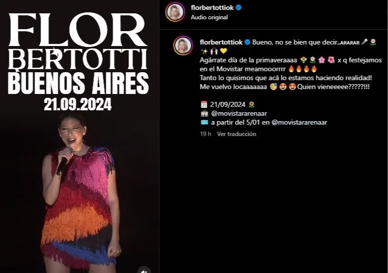 Según indicó la artista en sus redes sociales, el show en Buenos Aires cerrará la gira de Floricienta.