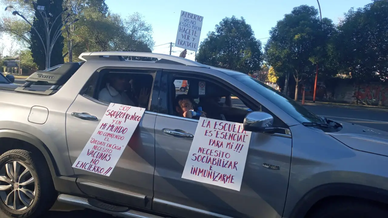 Algunos de los mensajes en carteles que se pudieron leer desde los autos que participaron de la caravana en Carlos Paz, son: «La escuela es esencial para mí!!! Necesito sociabilizar e inmunizarme; «Soy esquizofrénico y en mi mundo no comprendo el ‘quedate en casa’; «Necesito vacunas, no encierro»; «Libertad al pueblo!! Corruptos presos; Justicia independiente», «Que se vayan todos».