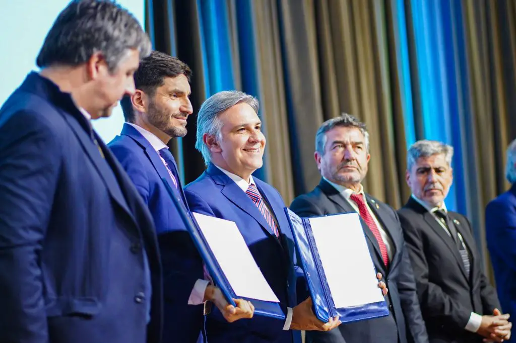 El gobernador Martín Llaryora y su par santafecino, Maximiliano Pullaro, encabezaron la firma del convenio que establece jornadas de formación del personal policial y la creación de herramientas para compartir y cruzar información, entre otros temas.