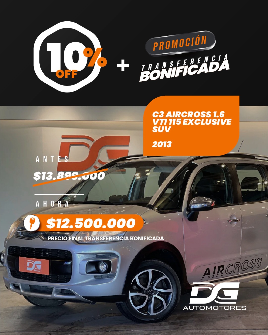 – Teléfono: 3541-608256. Web:www.dgautomotores.com.ar. Instagram:Dgautomotores. Facebook:DG Automotores.TikTok yYoutube. Sucursales: Av. San Martín 1678 o Av Carcano 696 – Villa Carlos Paz.