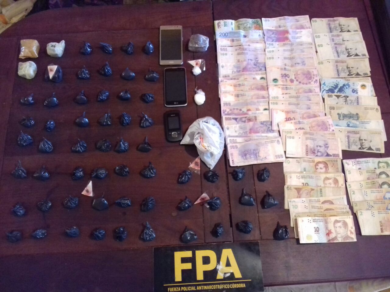 Tras un intenso registro, con la colaboración de los canes detectores de narcóticos, personal de la Fuerza incautó 4438 dosis de marihuana (distribuidas en varios envoltorios y un pan) y 28 de cocaína, 82 semillas de cannabis sativa, dinero ($13.304), 14 cartuchos calibre 38 y elementos aparentemente relacionados al fraccionamiento de sustancias ilícitas.