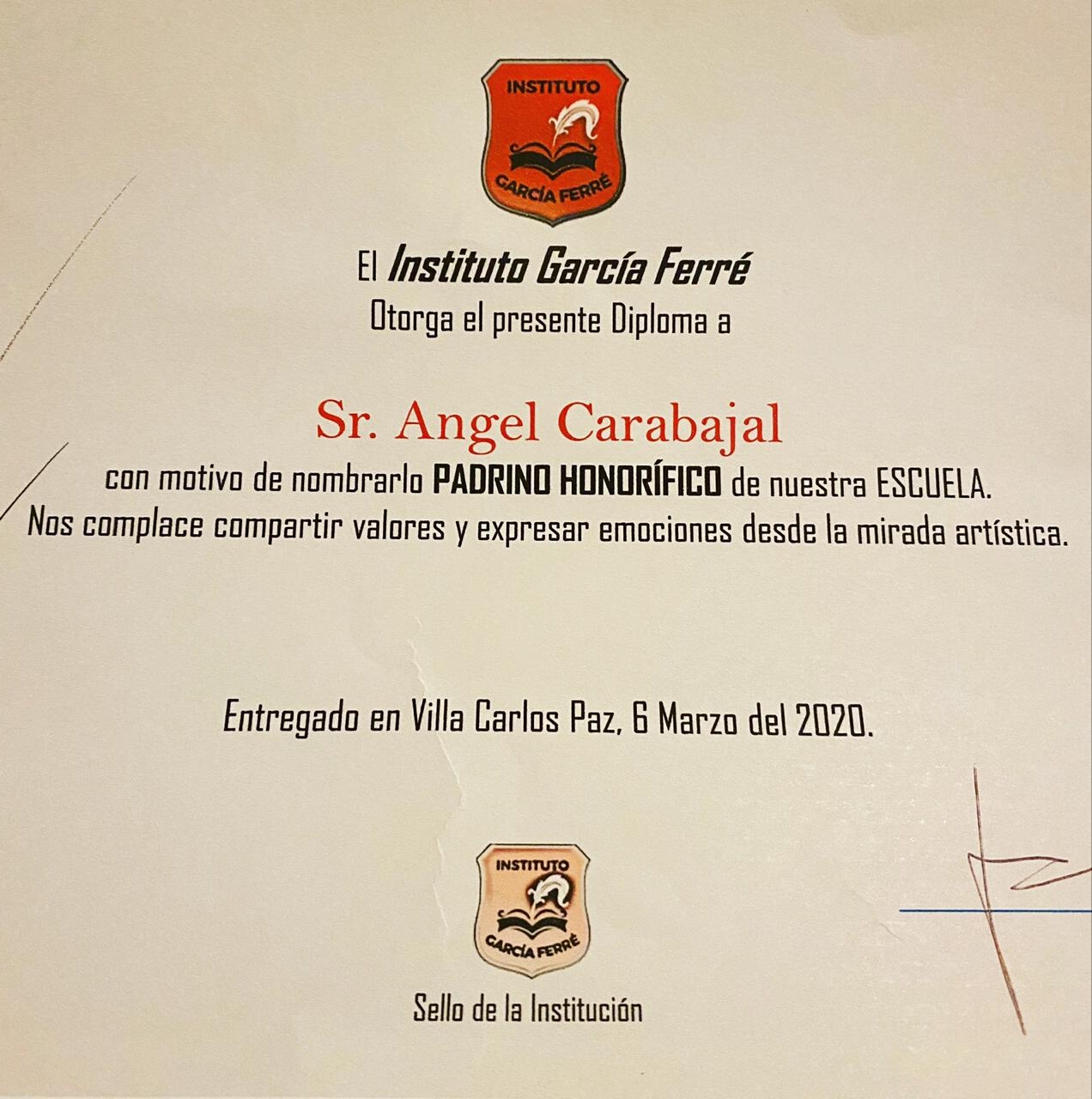 Angel Carabajal fue distinguido, como «Padrino Honorífico», por el Instituto García Ferré, por compartir valores y expresar emociones desde la mirada artística.