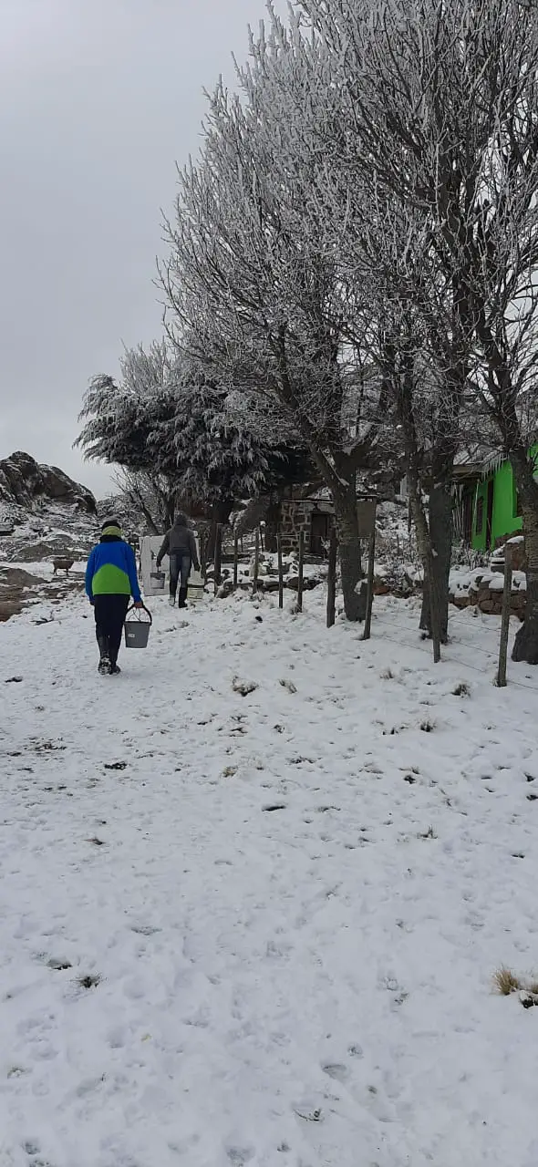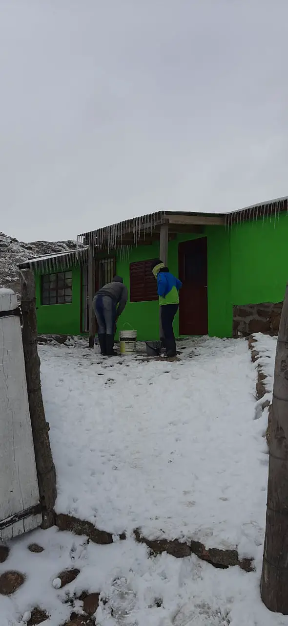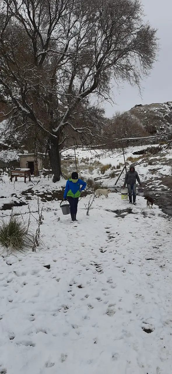 “No tenemos agua porque se congelan los caños así que vamos a buscar agua al arroyo”; aseguró Silvina que contó que les queda poca leña para afrontar los días que vienen.