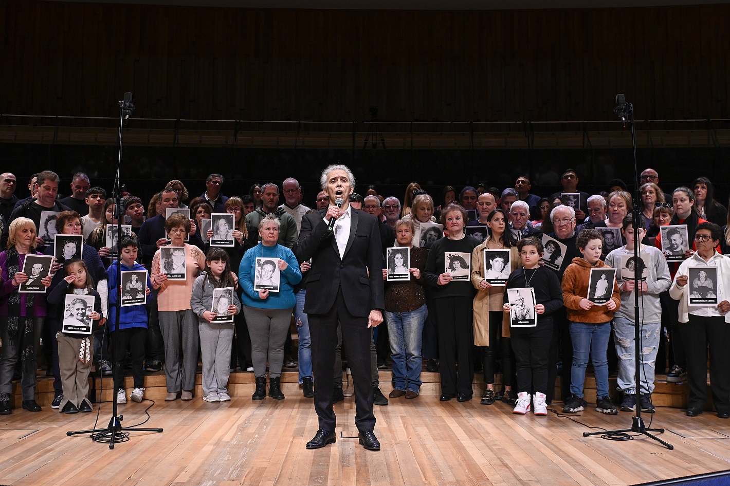 La interpretación coral de la letra “Venceremos” representó un sentido abrazo simbólico a los familiares para manifestarles su apoyo, y para honrar la vida de las 85 personas que fueron asesinadas en la masacre ejecutada el 18 de julio de 1994 por el terrorismo internacional.