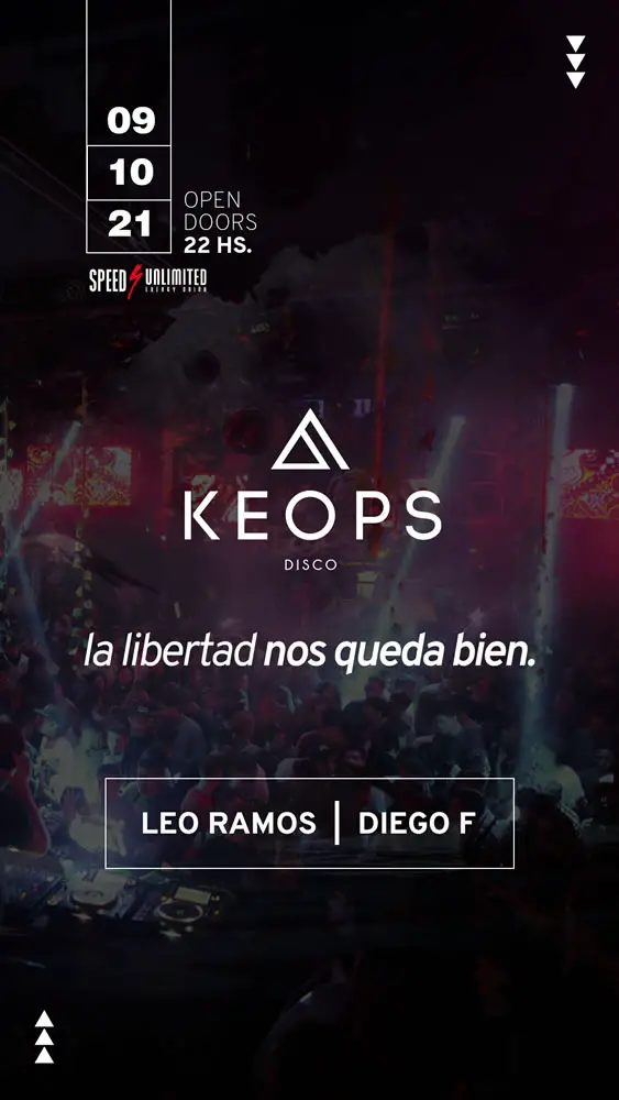 Por último, Keops (Roque Saénz Peña y Séneca) abrirá este 9 de octubre, desde las 22 hs hasta las 4 AM. Con DJ Leo Ramos y Diego F.