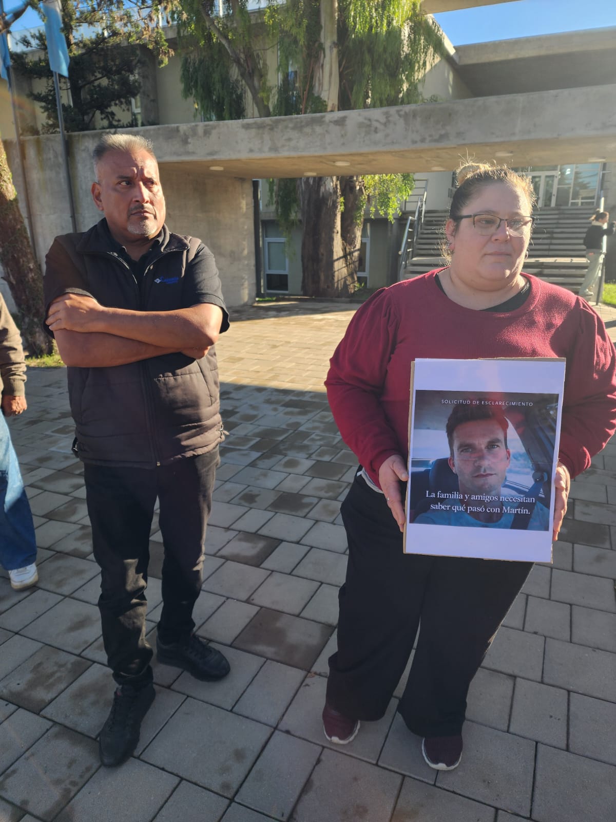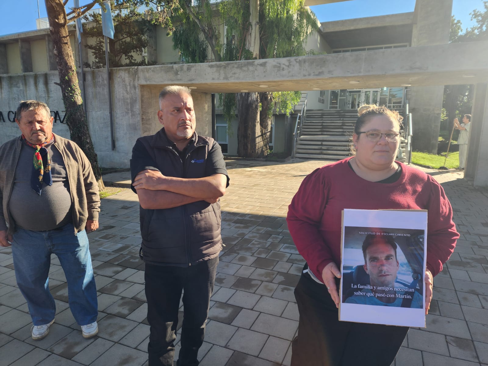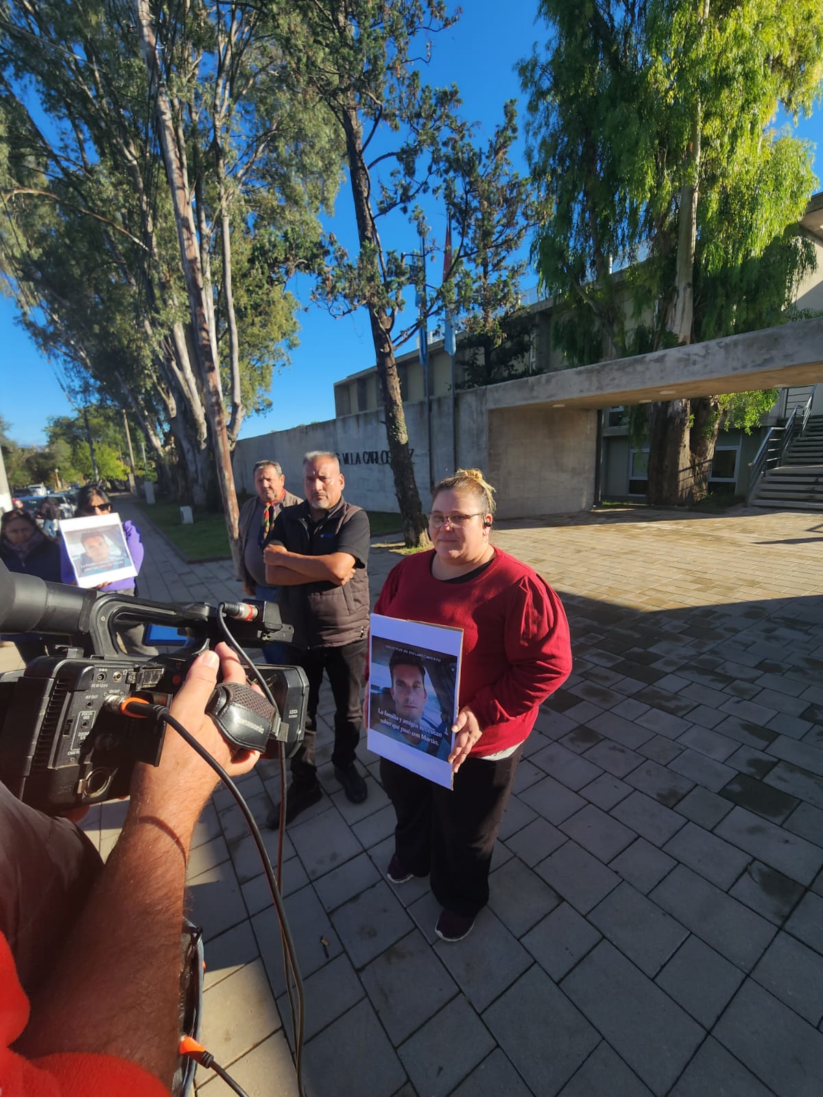 Este lunes, frente a Tribunales de Villa Carlos Paz, allegados y familiares dieron una nota televisiva portando carteles y exigiendo acceso al expediente.