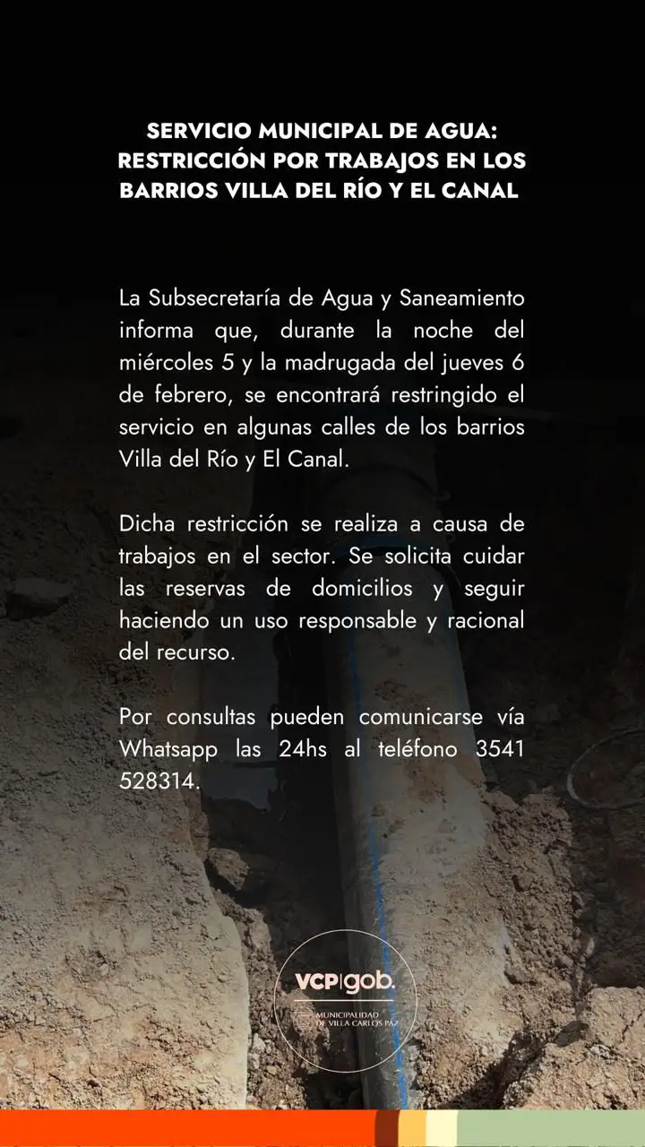 El municipio pidió a los vecinos de esos sectores el cuidado del recurso hasta tanto se normalice el servicio.