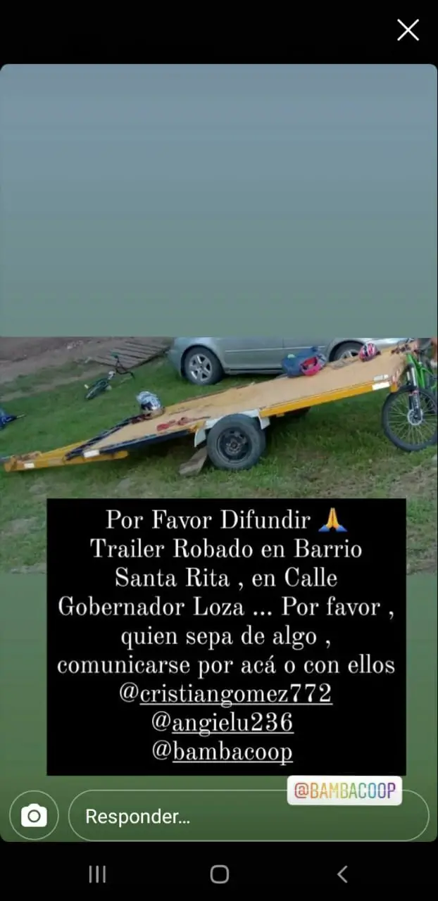 En cuanto a los detalles del trailer, el vecino comentó que es «una plancha, de marca Rami, está prácticamente nueva. Es amarilla, tiene un número de chasis que está adjuntado en la denuncia».