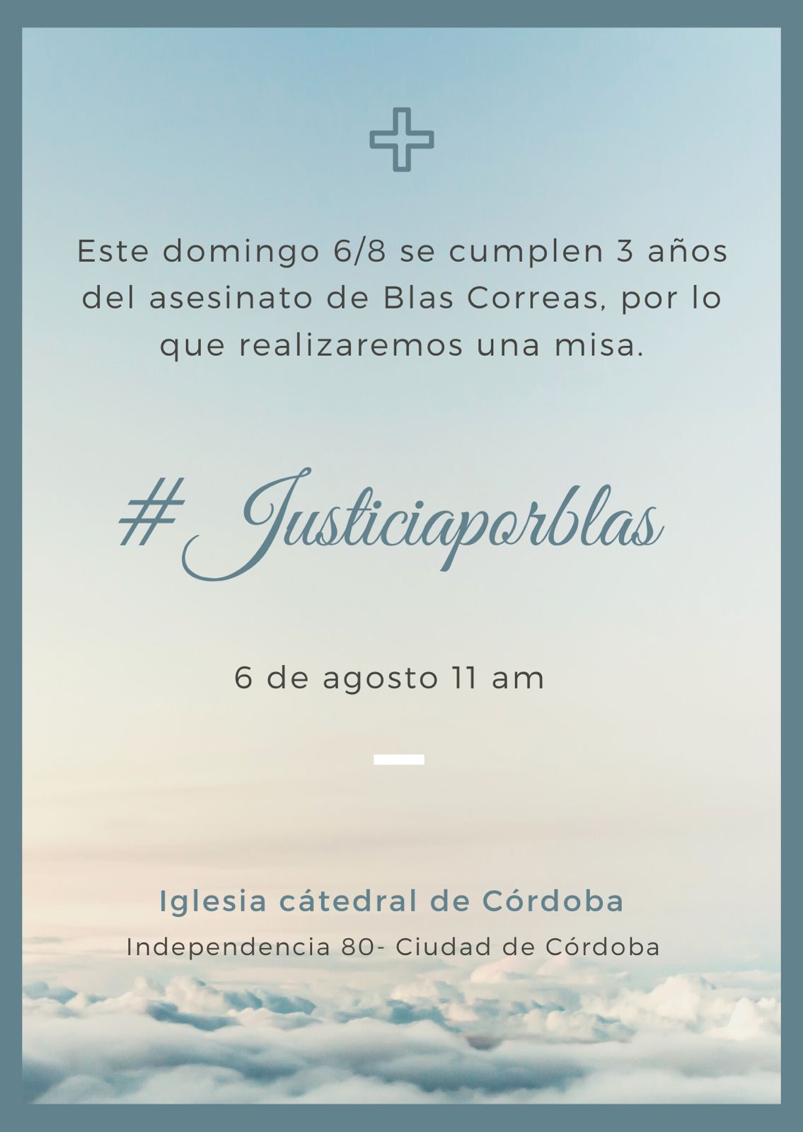 La misa será en la Iglesia Catedral de Córdoba (ubicada en Independencia 80 – Córdoba Capital) a partir de las 11:00hs.