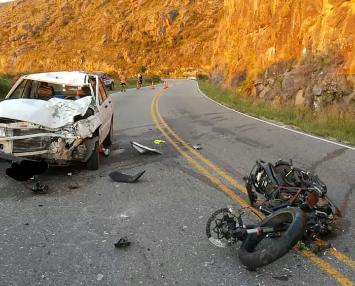 Un accidente fatal tuvo lugar hoy a las 19,11 hs en la ruta E34 paraje Niña Paula, en Altas Cumbres. Se produjo un choque frontal entre un auto y una motocicleta.