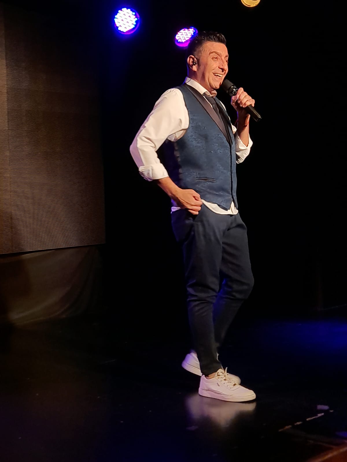 El humorista Adrián Gómez estrenó anoche su nuevo unipersonal «Los chicos de mi edad 2.0» en el Eleton Resort. La sala Francisco lució repleta e hizo reir y hasta cantar a los turistas que asistieron al show en el hotel.