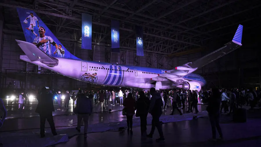 Aerolíneas Argentinas, la Asociación del Fútbol Argentino (AFA) y Yacimientos Petrolíferos Fiscales (YPF) presentaron en el aeropuerto internacional de Ezeiza el avión que transportará a los hinchas de la selección de fútbol que asistirán al Mundial de Qatar, especialmente ploteado con los colores nacionales y fotos de los jugadores.