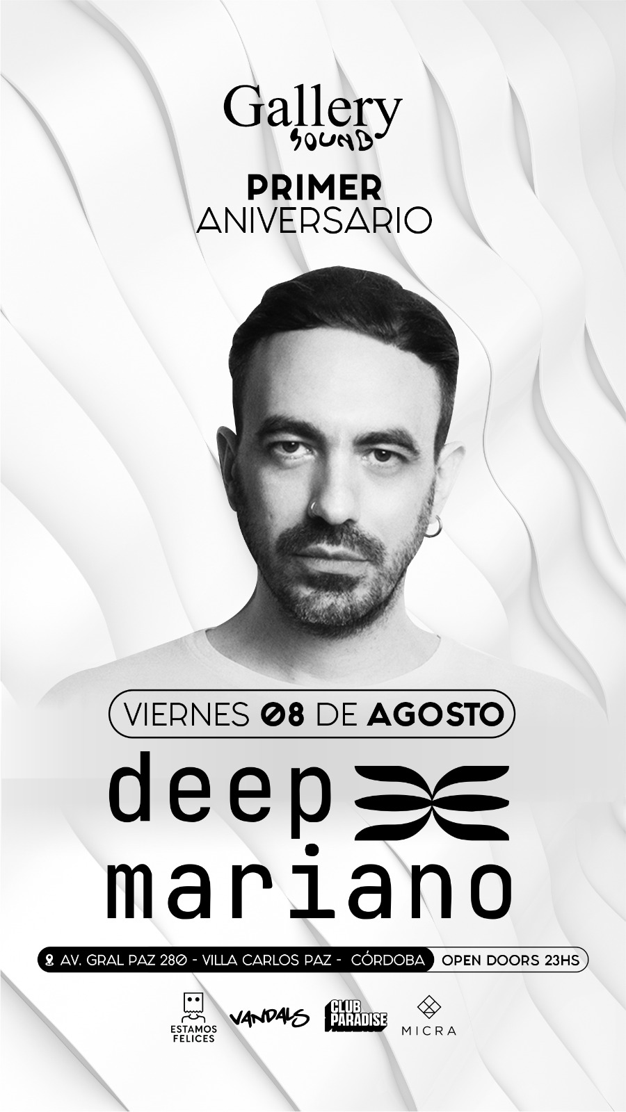 El viernes 8 arranca fuerte con el primer aniversario de Gallery Sound, en el nuevo sector Club Paradise. Desde Rosario llega Deep Mariano, DJ y productor de culto en la escena electrónica, con pasos por Time Warp y Creamfields. La noche promete beats profundos y una pista encendida desde las 23hs.
