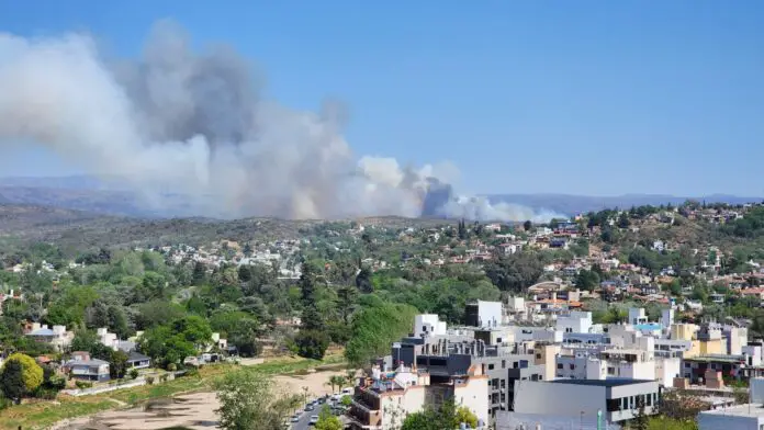 Este lunes alrededor de las 11,30 hs, se detectó un incendio forestal iniciado en la zona del camino que une Cabalango con Cuesta Blanca, cercano al barrio Altos del Valle de Villa Carlos Paz.