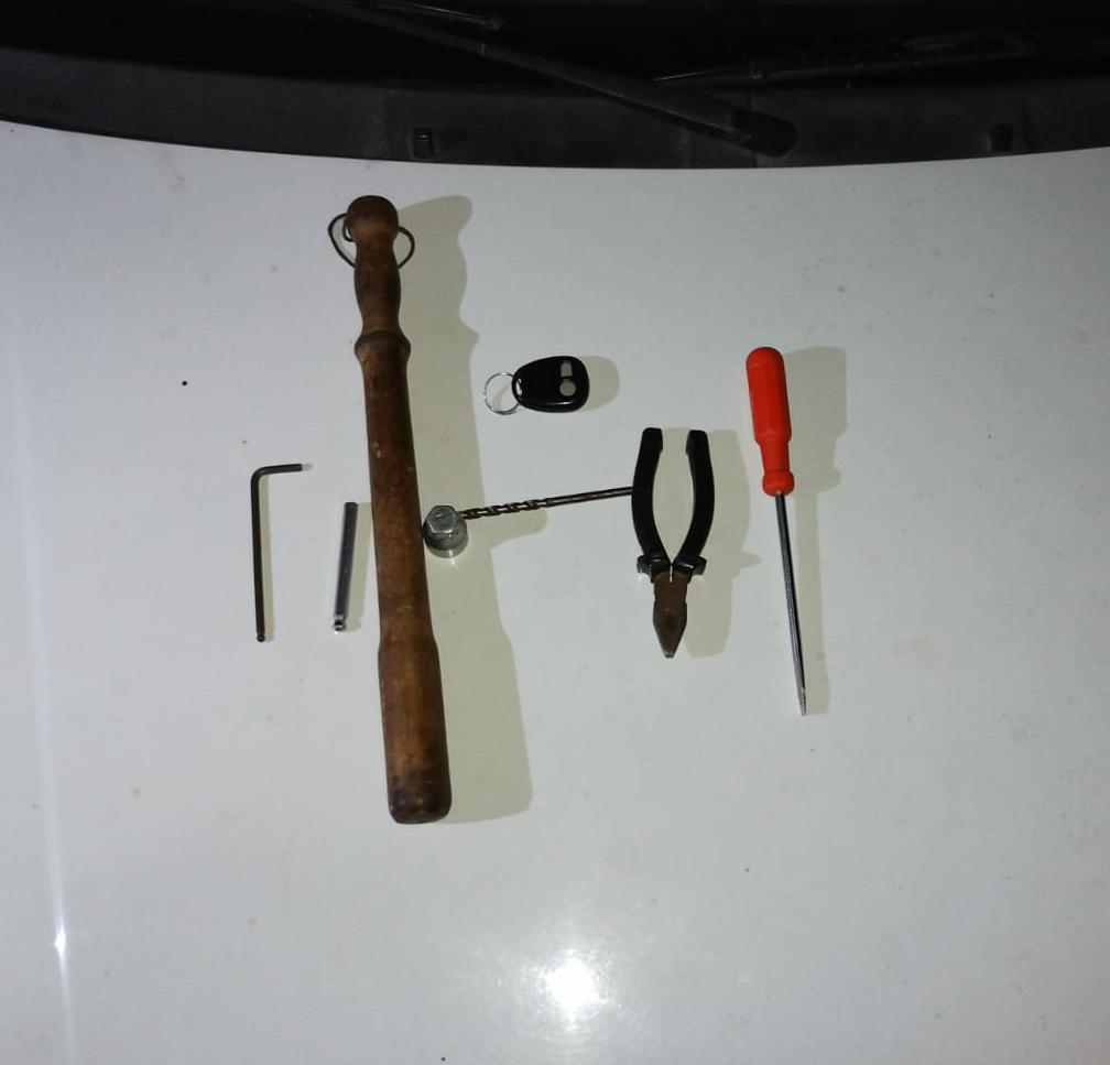 Tras un operativo cerrojo, siguiendo la descripción de la mujer víctima del intento de asalto, encontraron un Renault Clío en la calle Tobas y en su interior elementos compatibles con los que se utilizan para los robos de automóviles: un inhibidor, una pinza, una llave Alem, una punta de hierro y un bastón garrote.