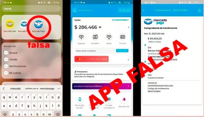 La app falsa de Mercado Pago ya tiene muchas víctimas, en particular en el interior del país, en ciudades como Trelew, Salta, San Juan y Mendoza. Y hasta ya provocó la detención de un delincuente. Según el portal Tiempo de San Juan, tres jóvenes quisieron pagar con la app falsa en un pequeño local de comidas de la localidad sanjuanina de Rawson y exhibieron el comprobante falso. El dueño del comercio desconfió del contenido de la pantalla y reclamó otra forma de pago. Dos de los jóvenes se dieron a la fuga y el tercero, Félix Ahumada Saball, fue retenido por otros clientes mientras el dueño llamó a la policía. Un “fuero de flagrancia” lo condenó a 1 año y 2 meses de prisión condicional por el delito de estafa, solo 48 horas después del episodio.