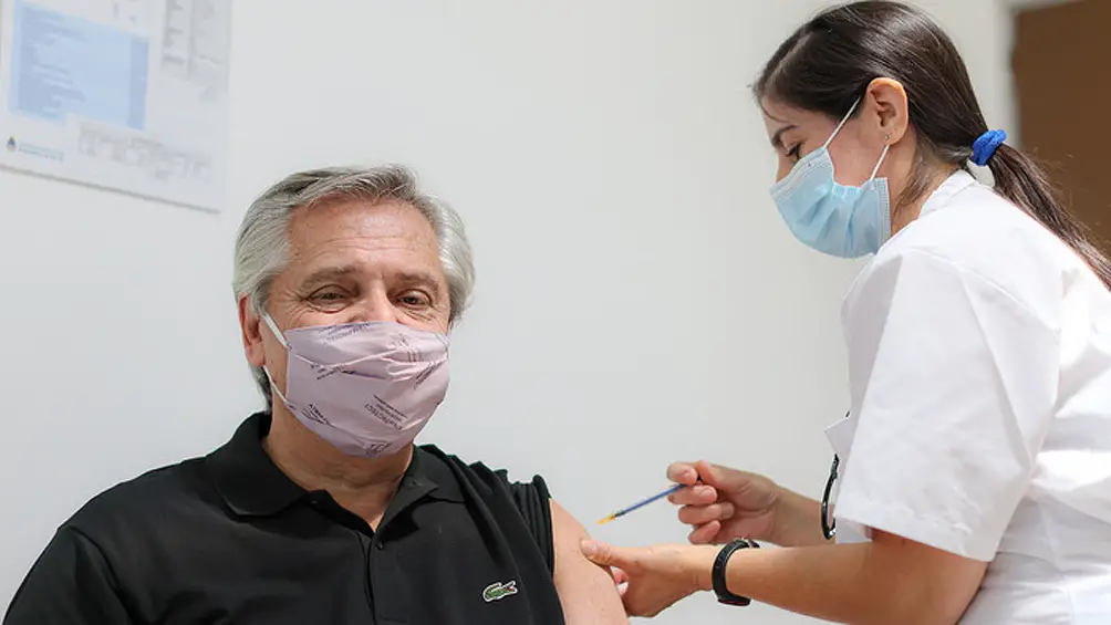 El mandatario recibió la vacuna en su brazo izquierdo, aplicada por la licenciada en enfermería Marcela Yanni, ocasión en la que reafirmó «la seguridad y eficacia de la vacuna» y reiteró que su «prioridad es que llegue a la mayoría de los argentinos en el menor tiempo posible».