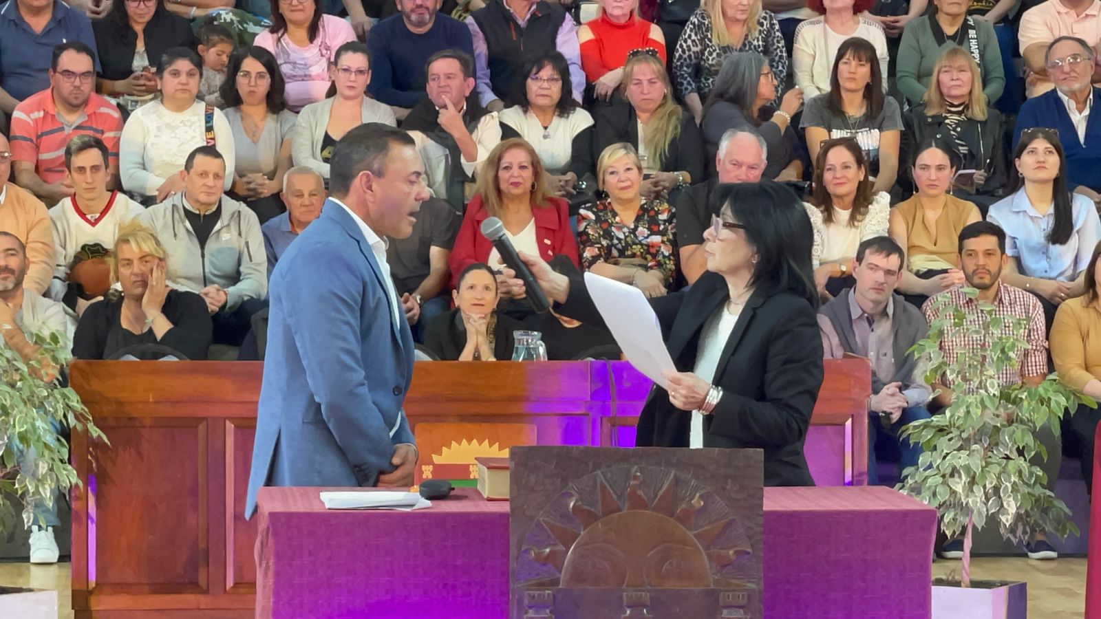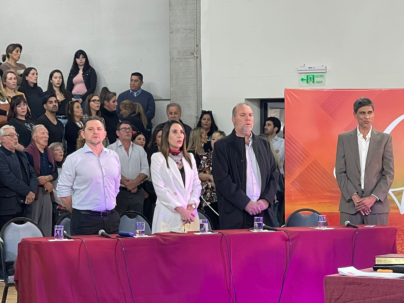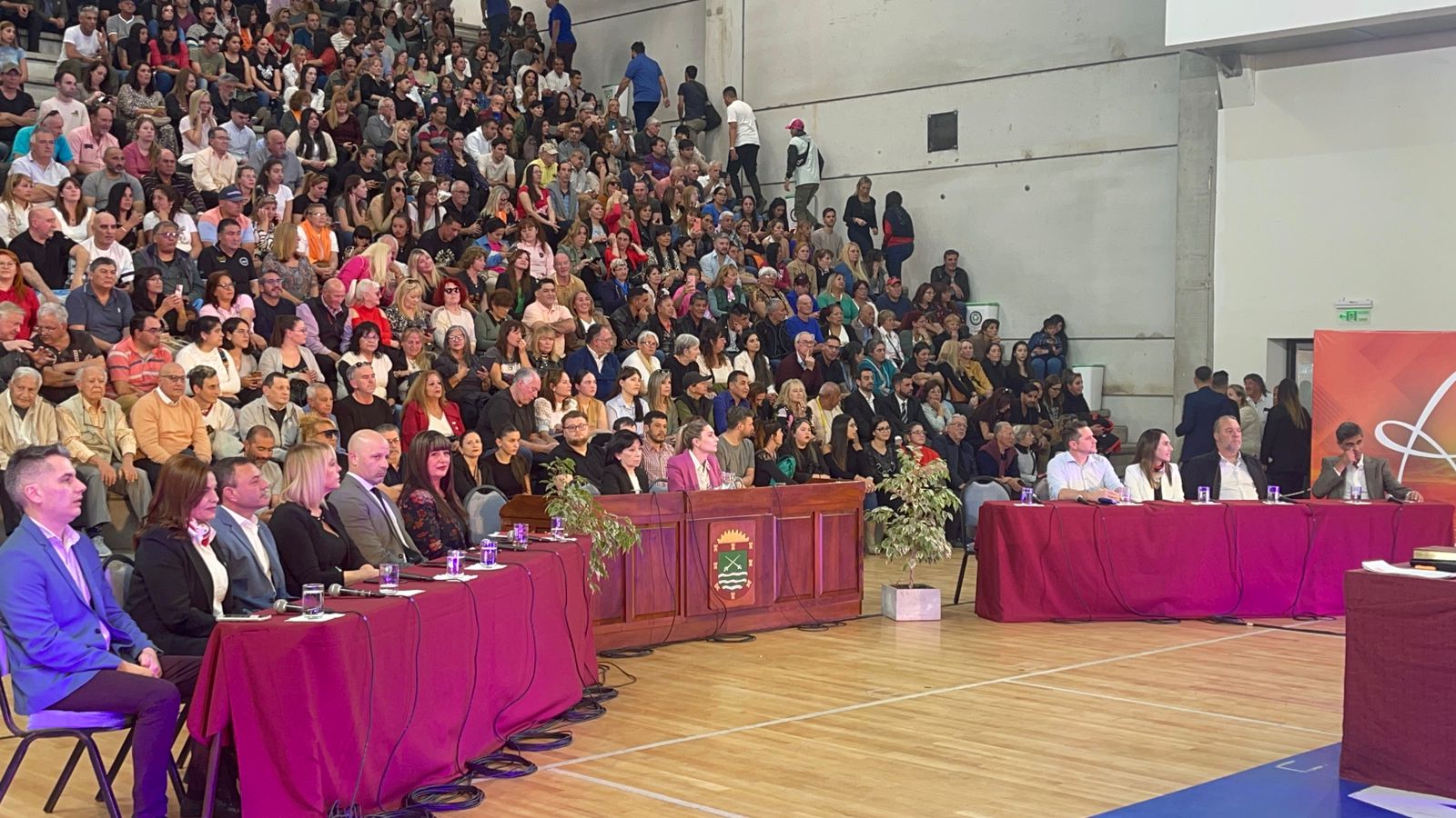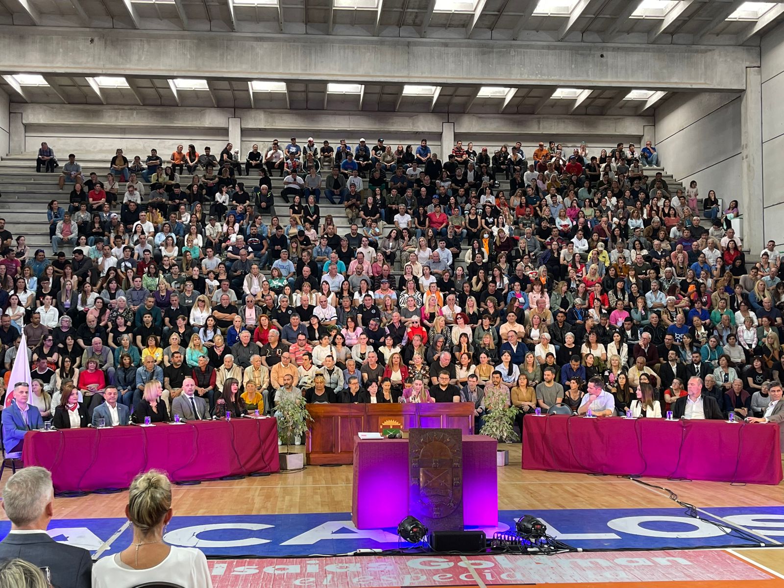 El acto comenzó pasadas las 16 en el Estadio Arenas con una buena presencia de público en las gradas y en el se tomó juramento a todos los concejales electos para el período 2023 – 2027.