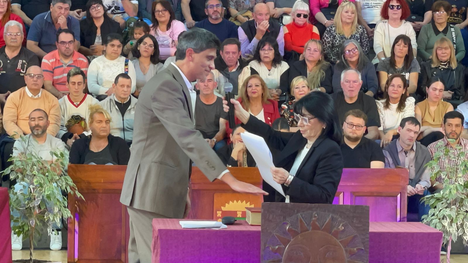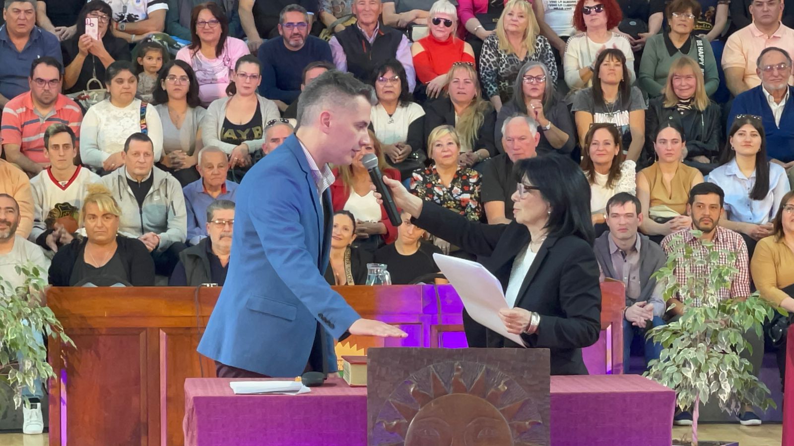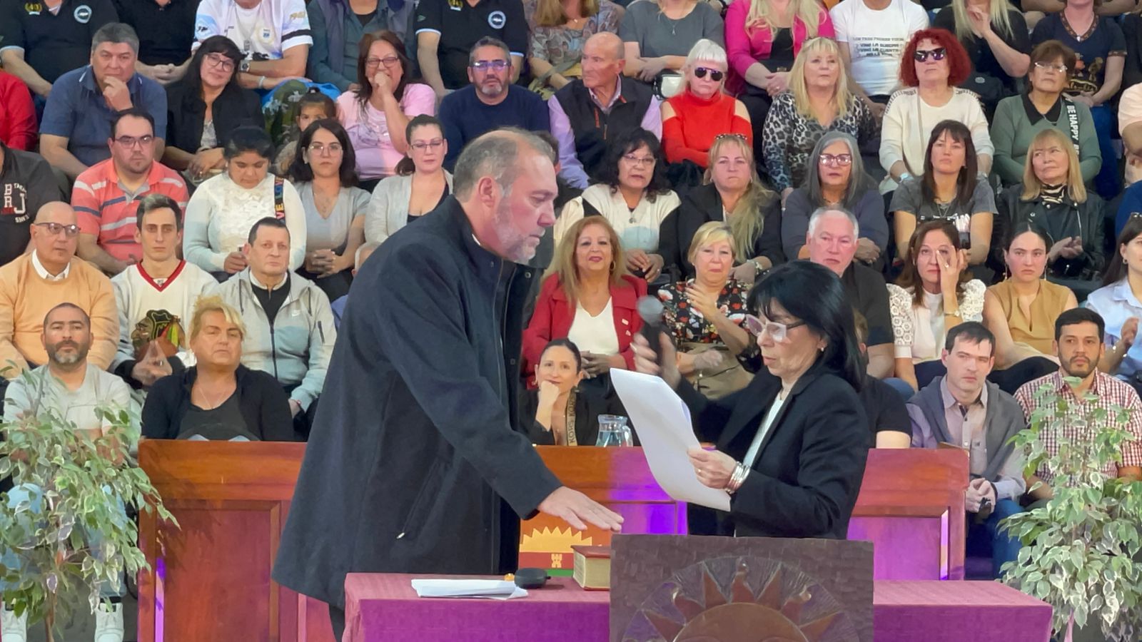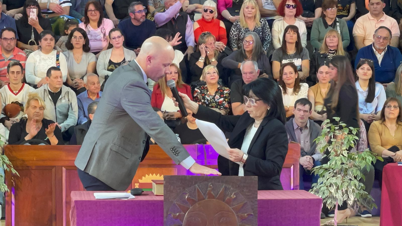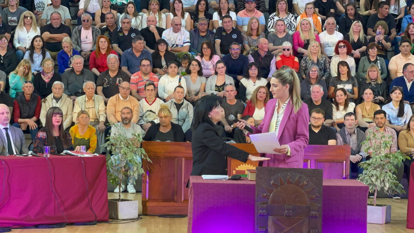 El acto comenzó pasadas las 16 en el Estadio Arenas con una buena presencia de público en las gradas y en el se tomó juramento a todos los concejales electos para el período 2023 – 2027.