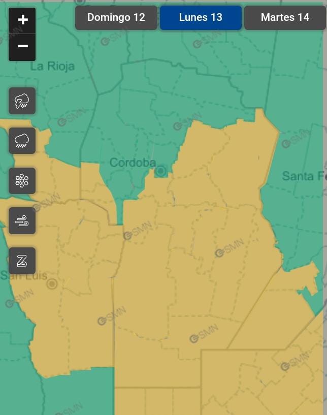 En cuanto a Punilla, no está comprendido por el alerta pero hay probabilidades de lluvias aisladas. .