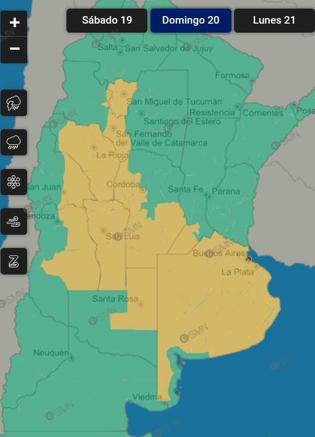 Desde el Servicio Meteorológico Nacional emitieron un alerta amarilla para varias zonas de Córdoba por tormentas durante la noche de este sábado y la mañana del domingo.