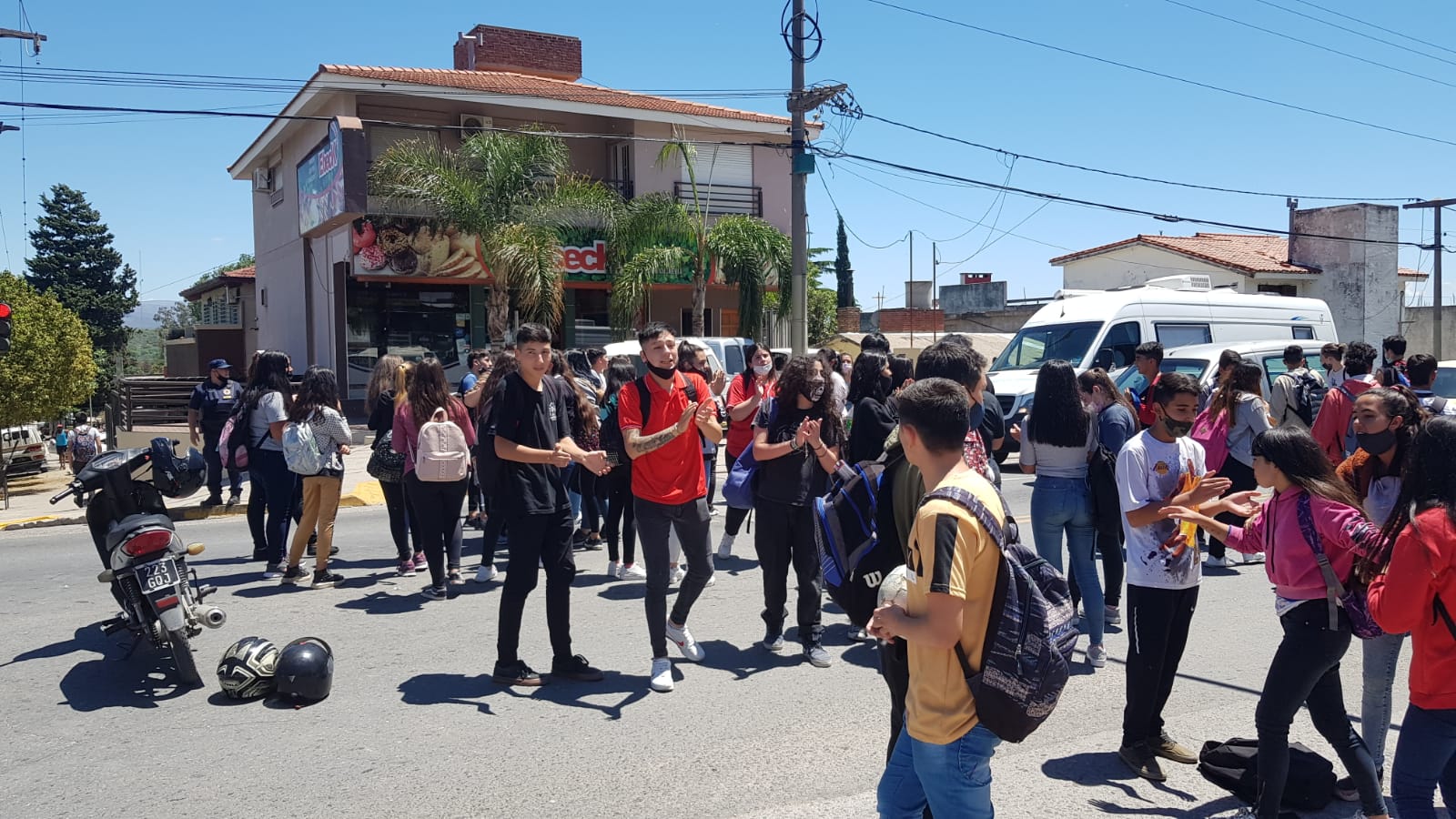 Tras varias horas de debate en la que participaron también profesores y los padres que fueron llegando a retirar a sus hijos a medida de que se fueron enterando del hecho, finalmente llegado el mediodía los alumnos decidieron trasladarse hacia la avenida Cárcano y Brasil, donde cortaron la arteria como forma de protesta para que la comunidad sepa lo que sucedió y las autoridades den soluciones urgentes.