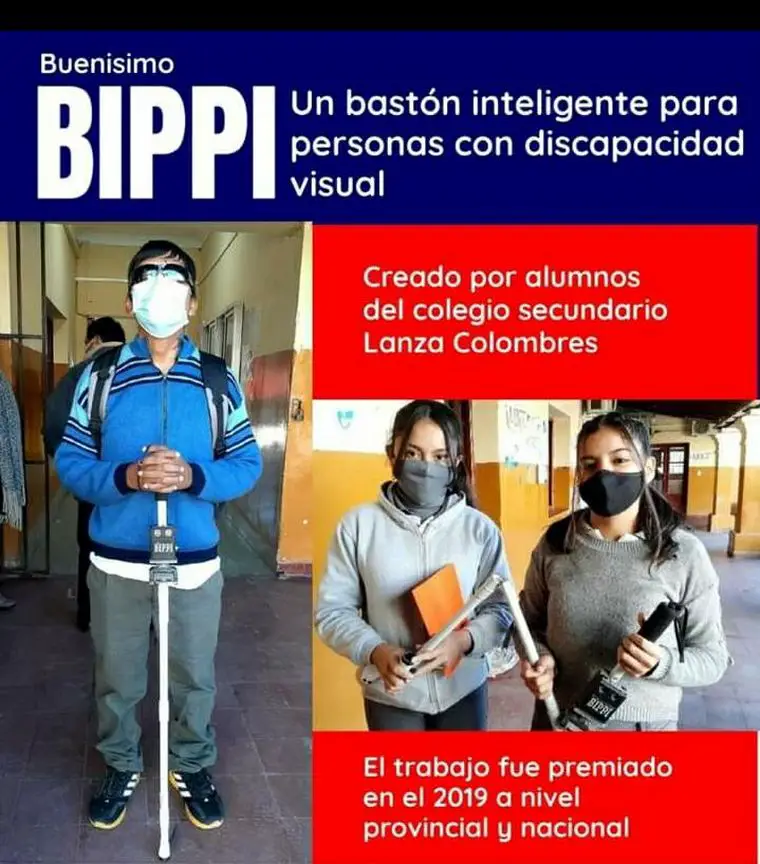 Un grupo de estudiantes del colegio Lanza Colombres de Orán, Salta, le añadieron al clásico bastón blanco varios sensores, GPS y bluetooth. El objetivo de esto es evitar que las personas con discapacidad visual sufran accidentes.