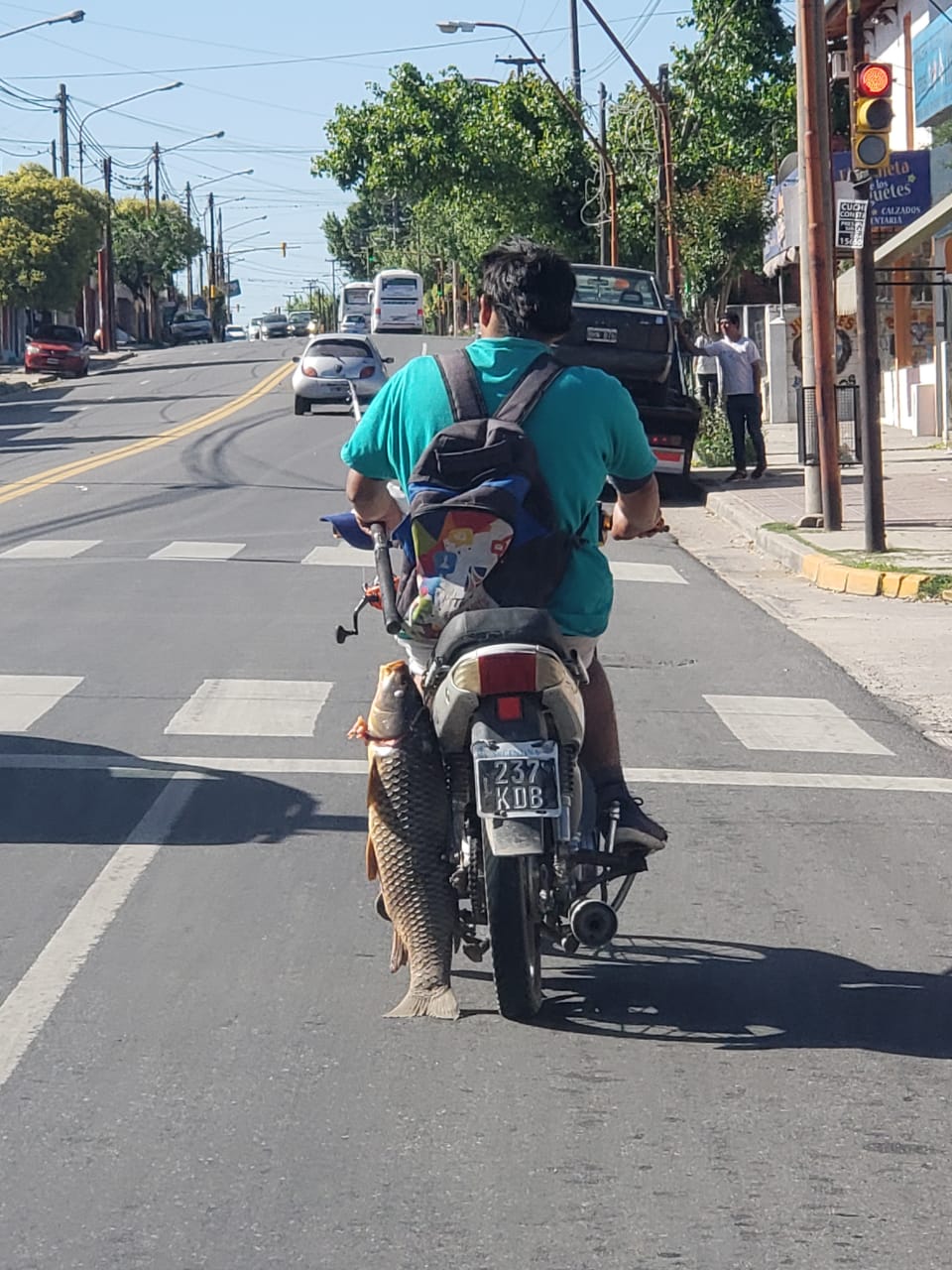 Se fue con carpa…seguramente desde el Puente Las Mojarras hacia un destino de parrilla final…final para este pescado que alguna vez fue pez…en el San Roque.