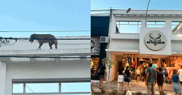 Hasta que finalmente caminó unos metros, pegó un salto hasta otro techo, y se fue, ante el “oohhh” de la gente que se había agolpado.