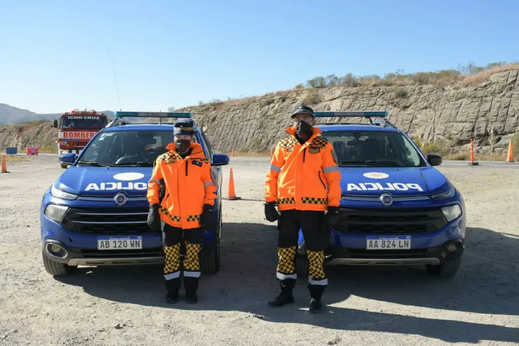 Le entrega del equipamiento tuvo lugar en el puesto de control de Copina, sobre el camino de Altas Cumbres, en donde estuvieron presentes el jefe y subjefe de Policía, Gustavo Vélez y Pablo Arregues, respectivamente.