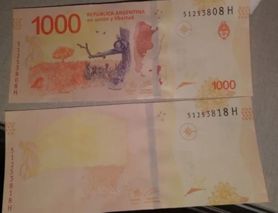 En la imagen de tapa, por ejemplo, se puede observar un billete sin la faja de seguridad, lo cual no es un error menor, ya que es uno de los principales elementos para distinguir si es falso.