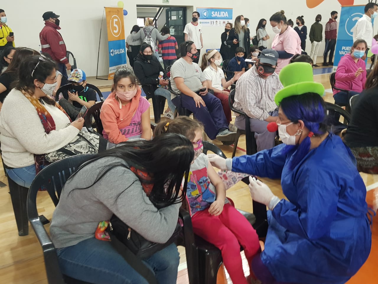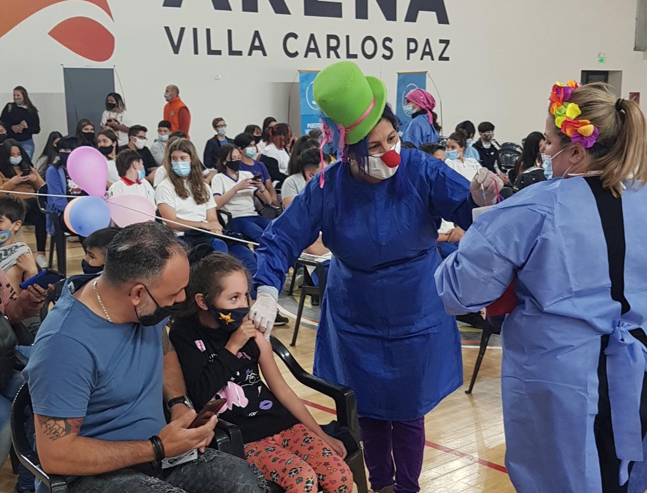 Con narices de payaso, sombreros, collares, pelucas y globos colgados en las instalaciones del edificio, las “Payaenfermeras” se ganaron la confianza de los chicos e hicieron que la vacuna pase a ser parte de un buen recuerdo.