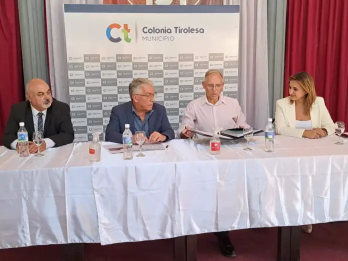 El acuerdo, que permite realizar las obras necesarias para iluminar el barrio Estación Colonia Tirolesa, fue rubricado en un acto público por el presidente de Epec, Jorge Daniel González; la presidenta del organismo municipal, Myrian Prunotto; el director ejecutivo del Ente, Marcelo Mansilla, y el intendente de Colonia Tirolesa, Oscar Lauret.