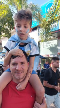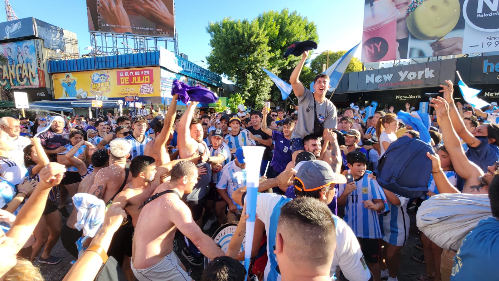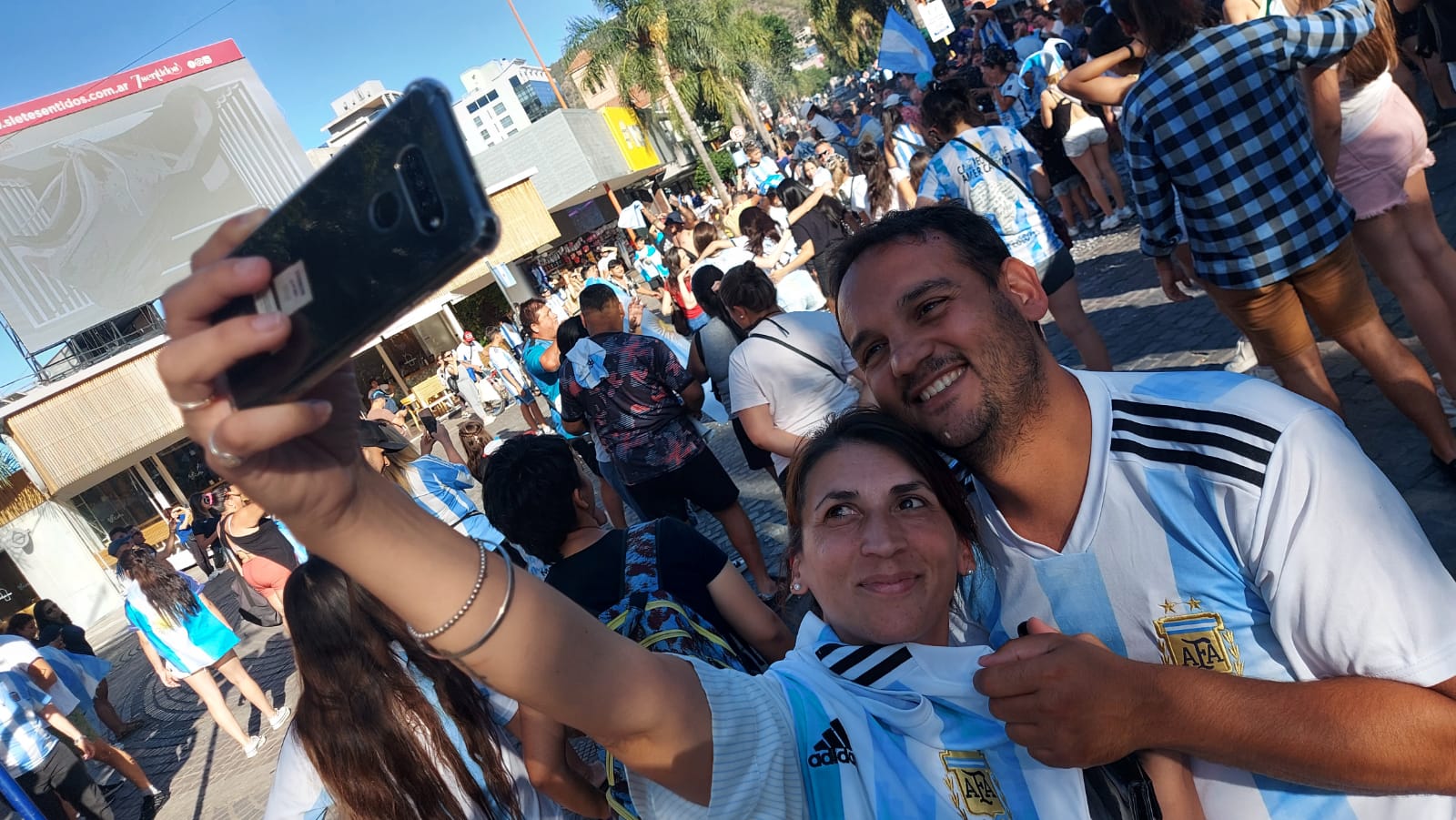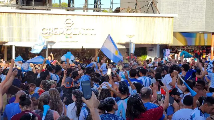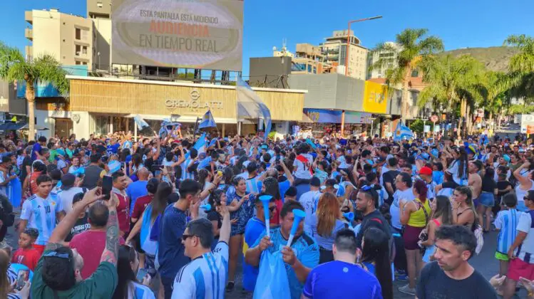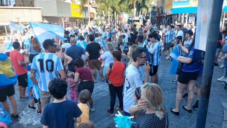 Al igual que en la fase de grupos, el centro de Carlos Paz se colmó de hinchas de la selección que festejaron el triunfo ante Australia.