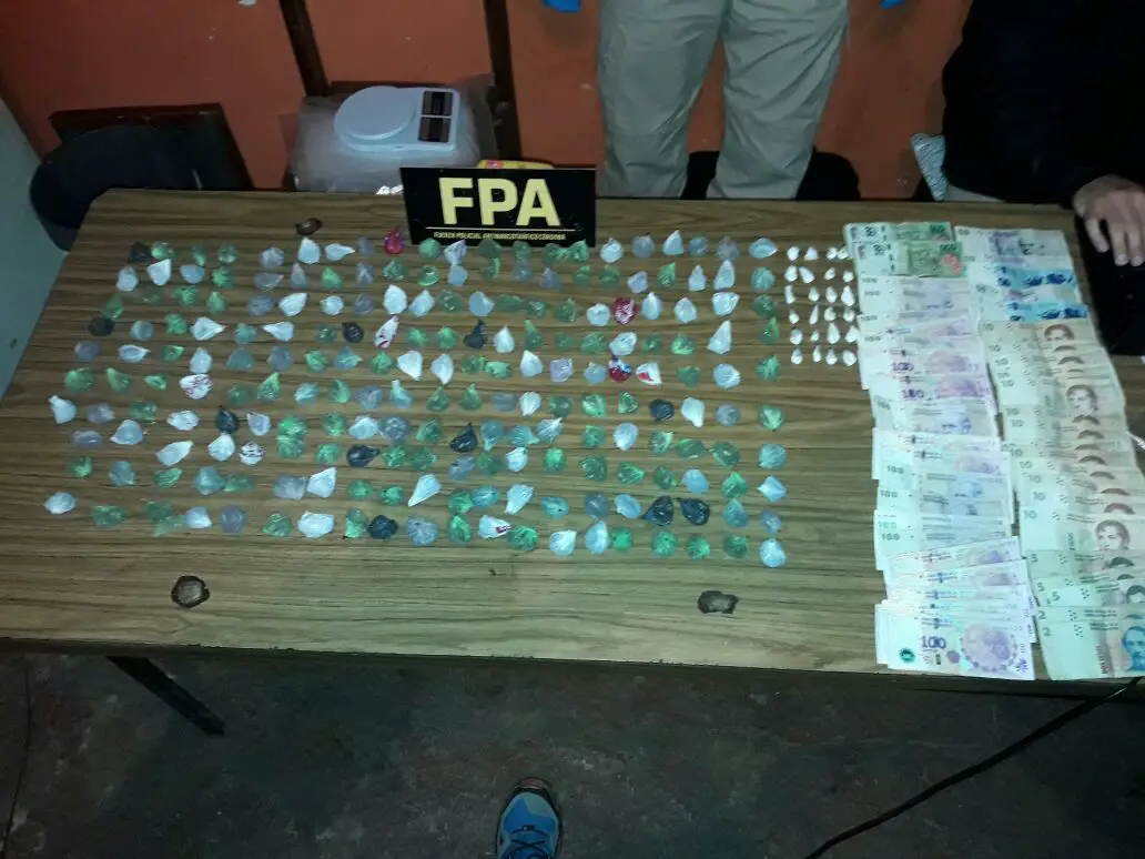 En el inmueble se secuestraron 207 envoltorios de marihuana y 24 de cocaína, dinero ($1.400) y diferentes elementos relacionados a la venta ilegal de sustancias. En el lugar no se encontraba el investigado.