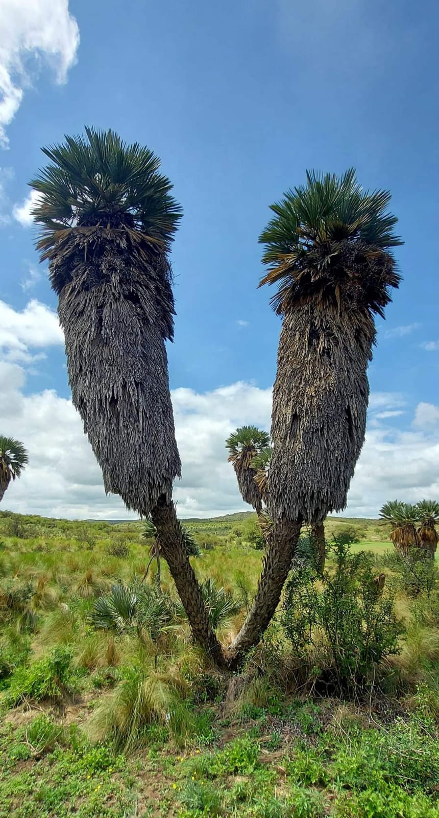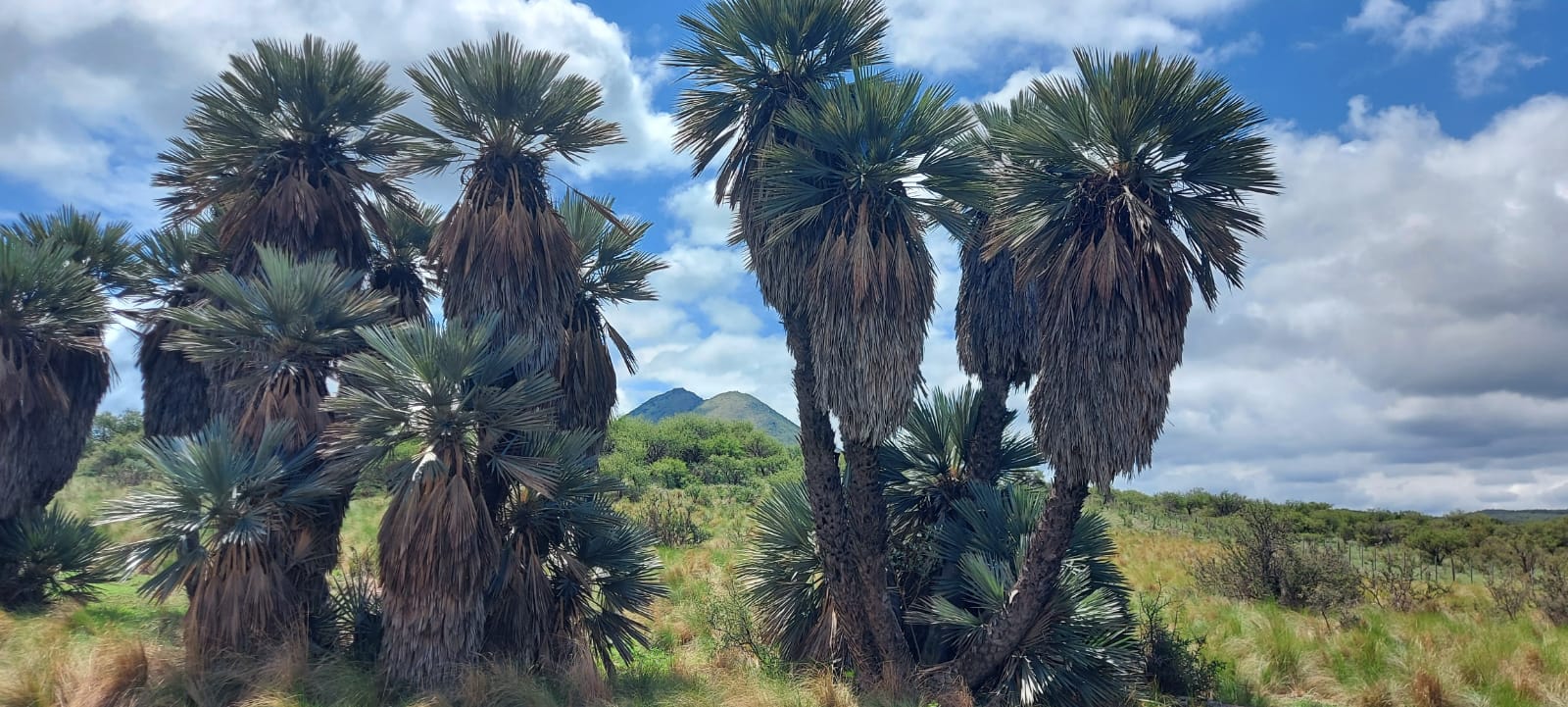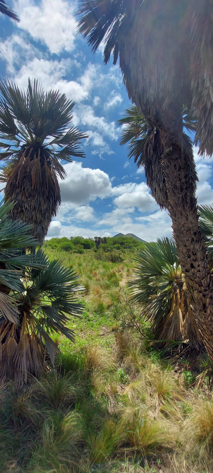 Si llegaron hasta acá, sin aburrirse, les cuento que esta bella dupla de ‘Palmeras Caranday’ está a metros del cementerio de la localidad de Las Palmas, famosa por su bella capillita, en el oeste cordoobé, en el Departamento Pocho… y no puedo evitarlo: ¡Me acordé del Pocho Angeloz!!!