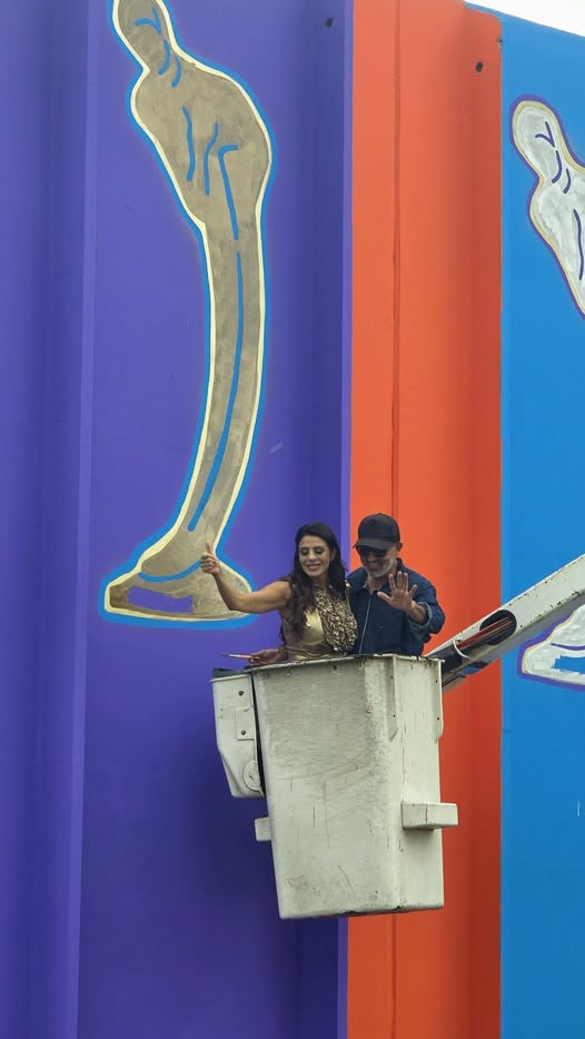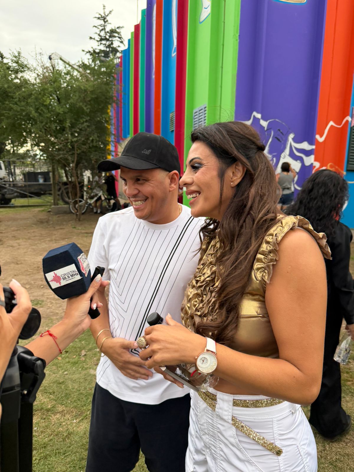 El artista plástico Mario Lange encabezó la intervención y saludó desde lo alto mientras comenzaba a definirse la figura central del Carlos en dorado. A su lado, con pintura fresca en las manos, estuvo la artista Mariana Clemensó, protagonista de Soy Mestiza, quien recientemente obtuvo el Carlos de Oro junto a Angel Carabajal. Ambos dejaron pinceladas simbólicas que inmortalizan su consagración en el panel dedicado al Oro del Verano 2026.