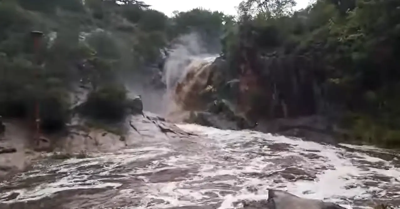 Uno de los ríos en los que más impresionó la fuerza del agua es en Tanti. Videos muestran cómo la creciente baja por la tradicional cascada de la localidad.
