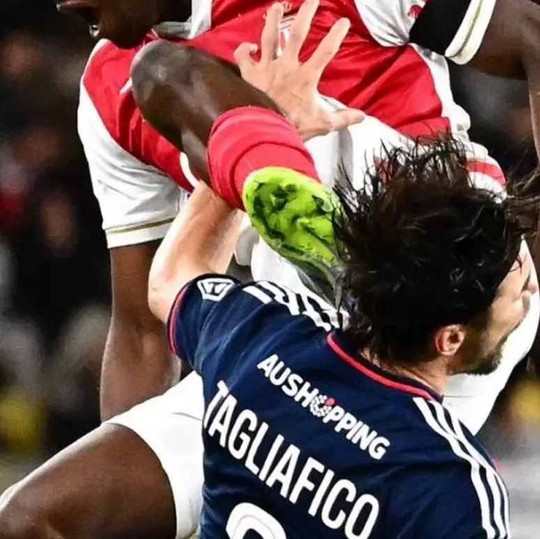 Tagliafico saltó para cabecear y Mamadou Coulibaly hizo lo mismo pero con su pierna elevada, siempre mirando hacia arriba, lo que imposibilitó que viera al argentino; el jugador del Mónaco fue expulsado por el árbitro Brisard.