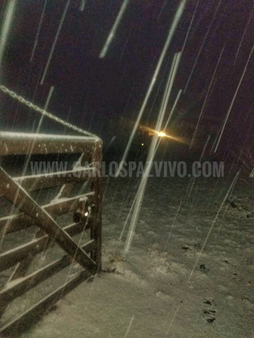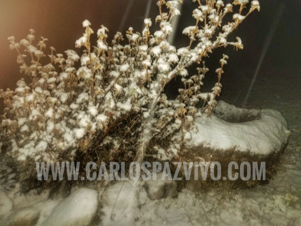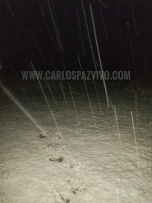 Mientras el frío y la lluvia se hacen sentir en nuestra ciudad y la región, en las zonas más altas de la provincia la nevada se volvió más intensa al caer el sol.
