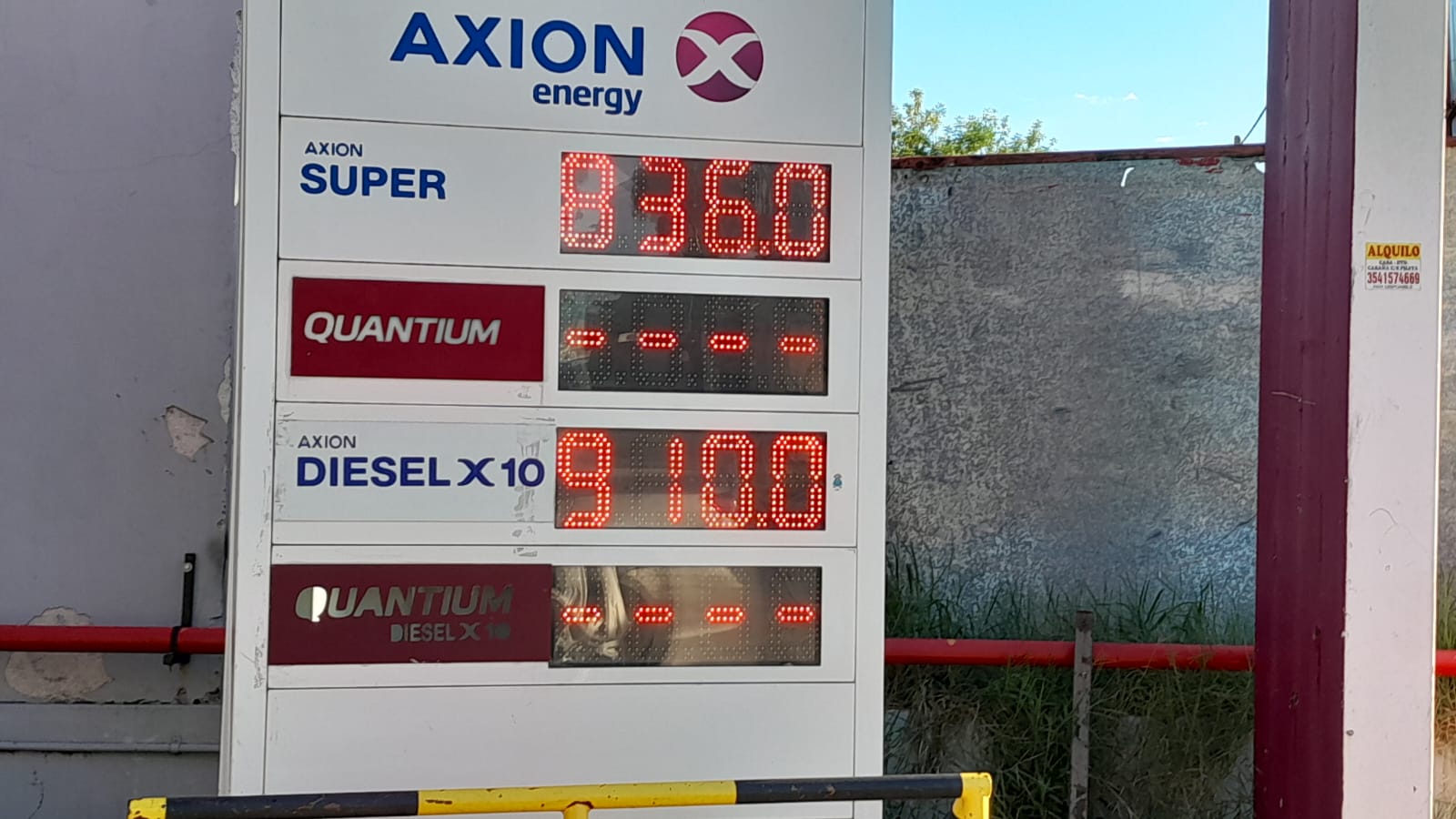 Este miércoles, en Carlos Paz la nafta súper en la estación Axion está a $836 el litro, en tanto el gasoil, cuesta $910.