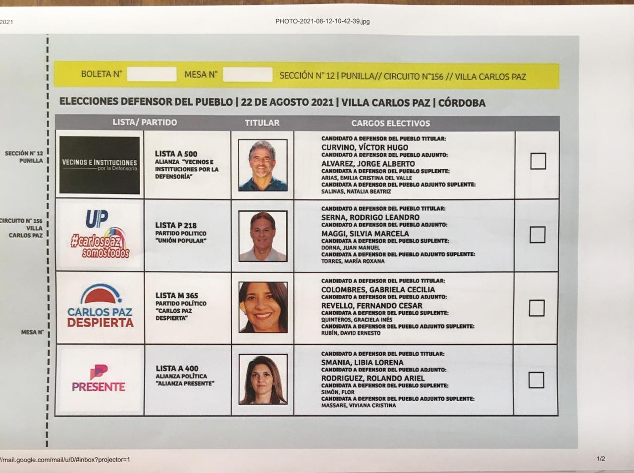 Este jueves se conoció el diseño de la Boleta Única de Sufragio que se utilizará para las elecciones del Defensor del Pueblo el próximo 22 de agosto.