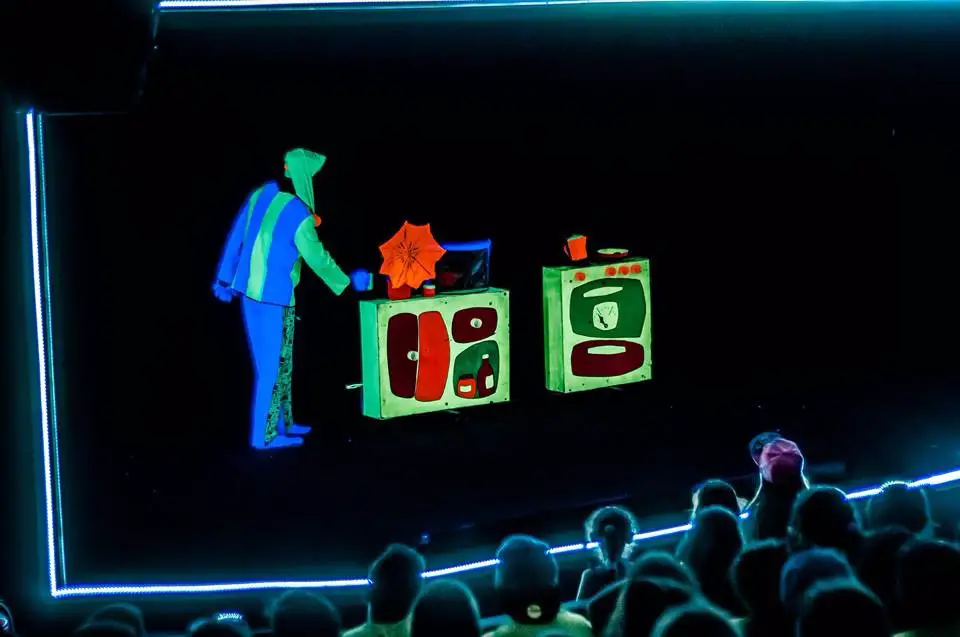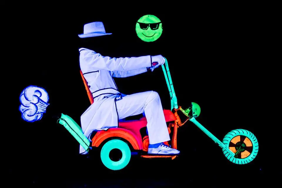 “Hacer teatro negro es muy loco porque tuvimos que acostumbrarnos a estar a ciegas en el escenario y que sólo se vea lo fluorescente, las cosas que vuelan”, señala Yamil.